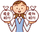 | 保険給付 | 被保険者やその家族が病気やけがをしたとき、出産したとき、死亡したときに、医療費を負担したり手当金を支給したりしています。保険給付には、現物給付と現金給付の2種類があります。 |